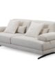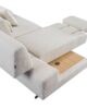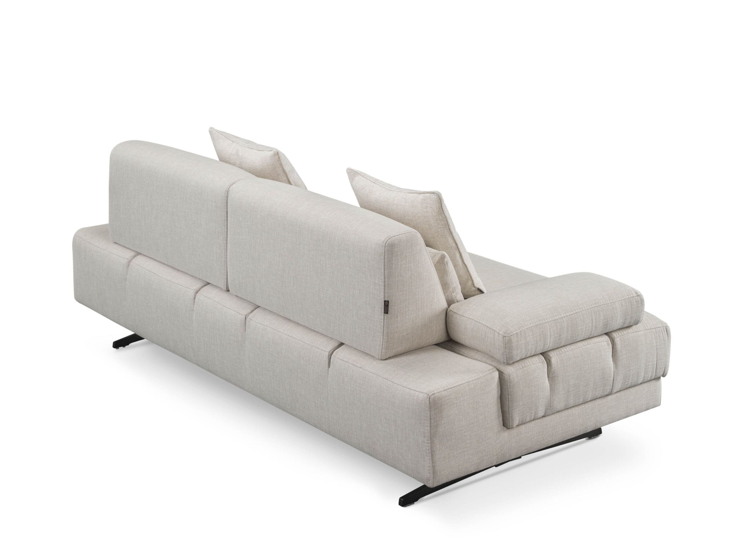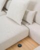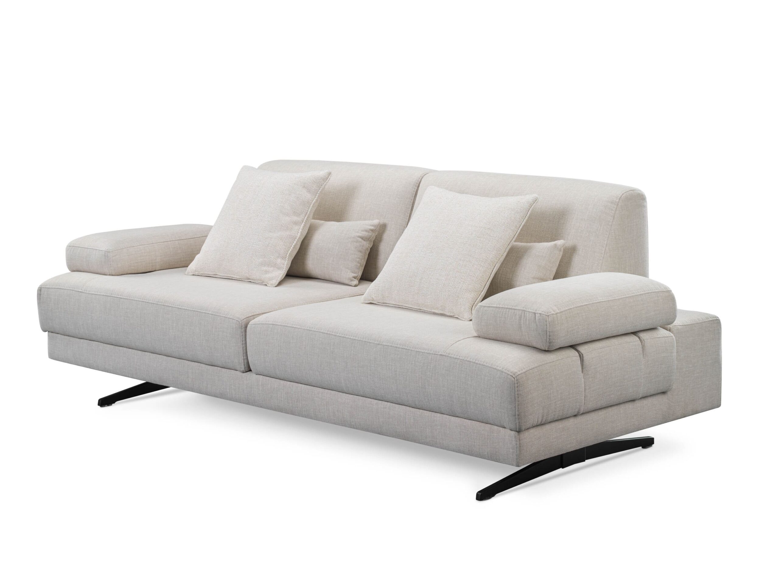 Design Minimalista & Elegante: Revestido num tecido de alta gramatura em tom bege areia, com pés metálicos de design industrial que conferem leveza visual e facilitam a limpeza por baixo do móvel.